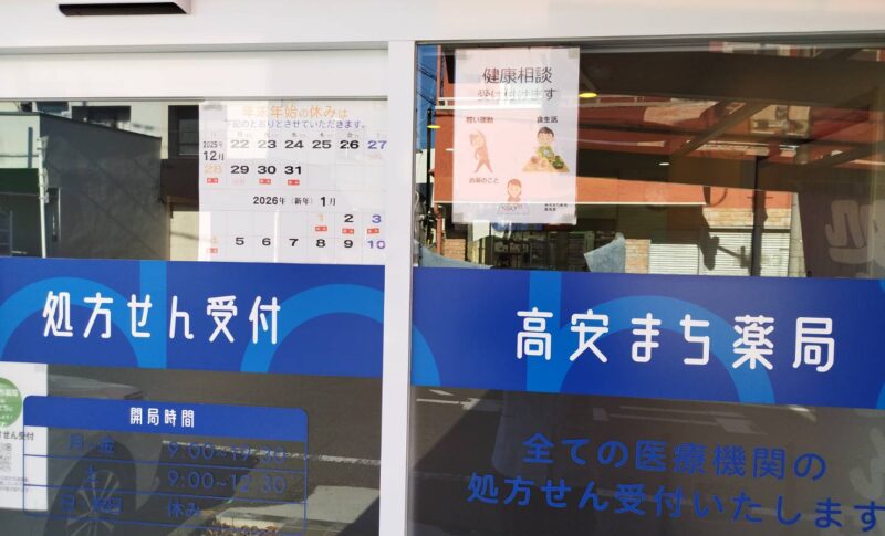 2025.12.30 高安まち薬局年末年始営業について 高安まち薬局 本年は開局前、開局後と患者様はもちろん、いろいろな方に大変お世話になりました。 本日午後より1月4日までお休みをいただきます。 1月5日より通常営業いたします。来年もどうぞよろしくお願い致します。 Tweet 八尾まち薬局年末年始営業予定について 前の記事 たまでまち薬局年末年始営業予定について 次の記事